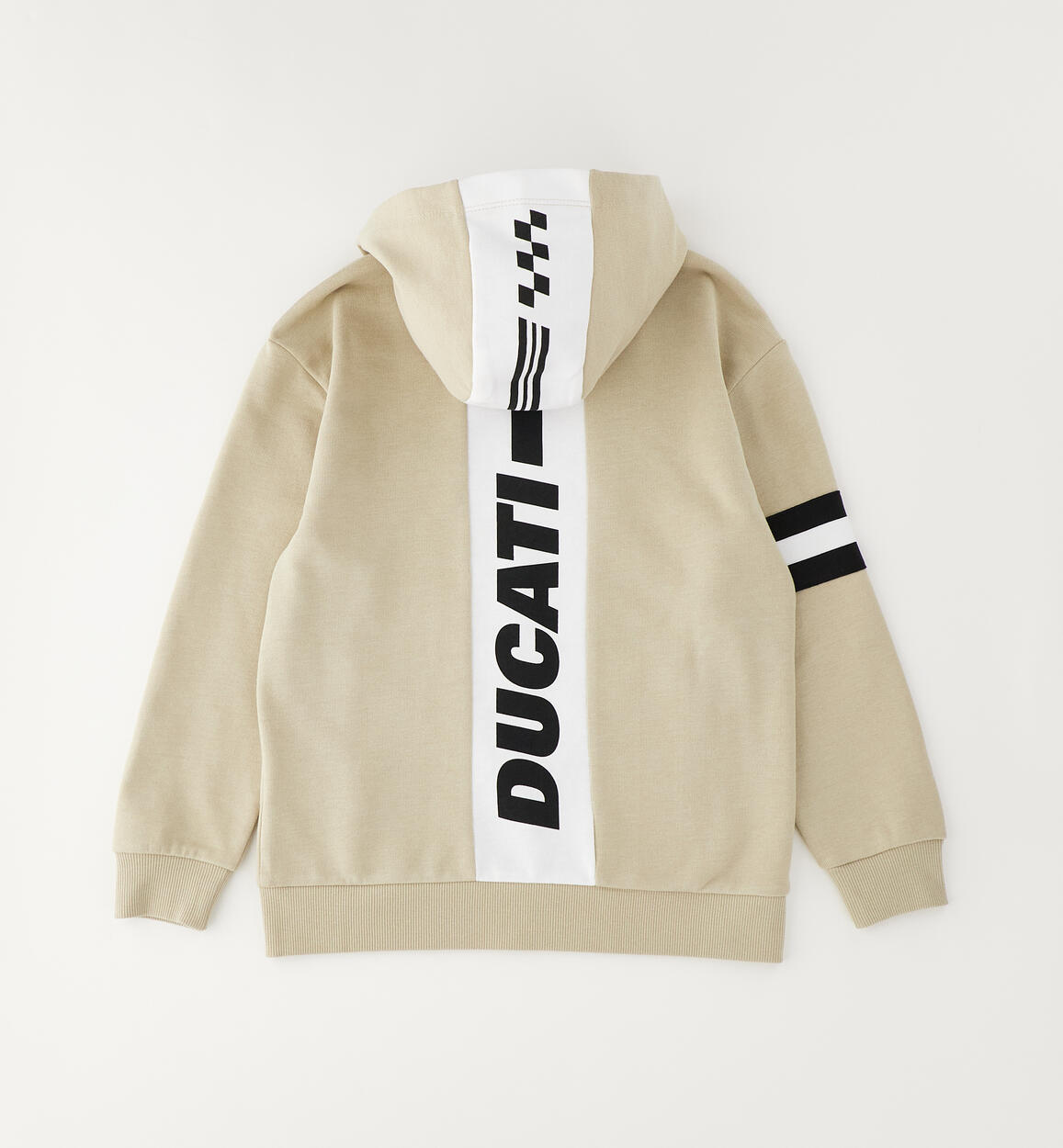 Felpa a manica lunga per ragazzo Ducati con cappuccio e apertura con zip. Applicazione sulla manica e stampa dietro. Tasche con zip. Spalla calata. Scegliendo i nostri prodotti in cotone, sostieni il nostro investimento nella missione Better Cotton. La fornitura di questo prodotto avviene tramite un sistema di bilancio di massa e potrebbe non contenere Better Cotton. Leggi di più su bettercotton.org/massbalance