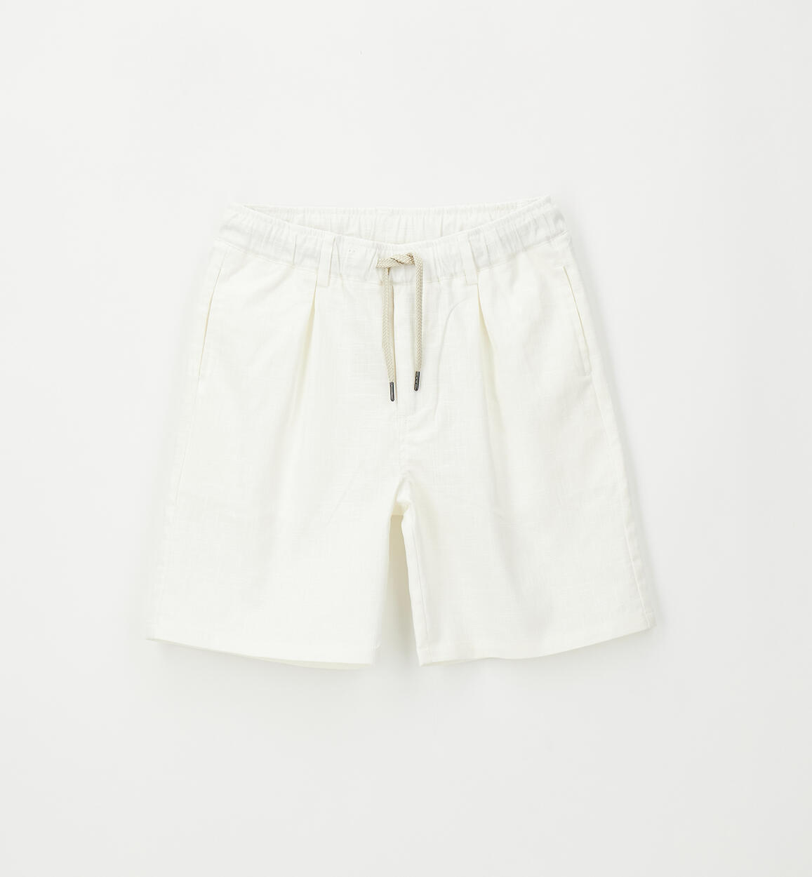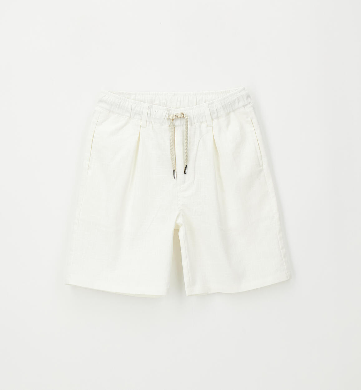 Pantalone corto per ragazzo Sarabanda realizzato in lino e cotone con elastico in vita e coulisse. Lunghezza al ginocchio. Carrot fitComposizione