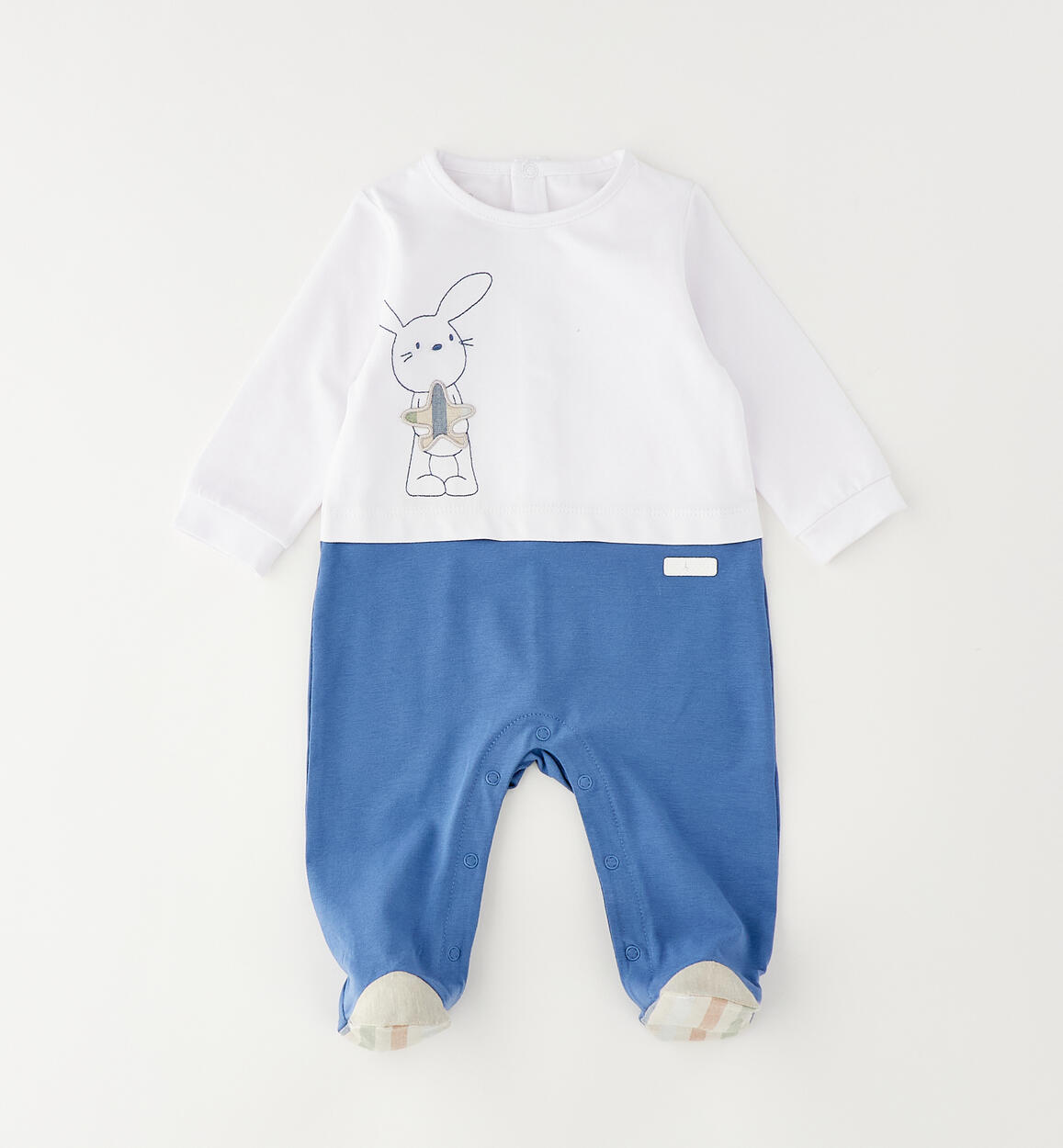 Tutina intera con piede per neonato Minibanda realizzata in jersey stretch di cotone. Apertura dietro e nell'interno gamba con bottoni a pressione. Scegliendo i nostri prodotti in cotone, sostieni l'impegno di Minibanda nella missione Better Cotton. La fornitura di questo prodotto avviene tramite un sistema di bilancio di massa e potrebbe non contenere Better Cotton. Leggi di più su bettercotton.org/massbalance