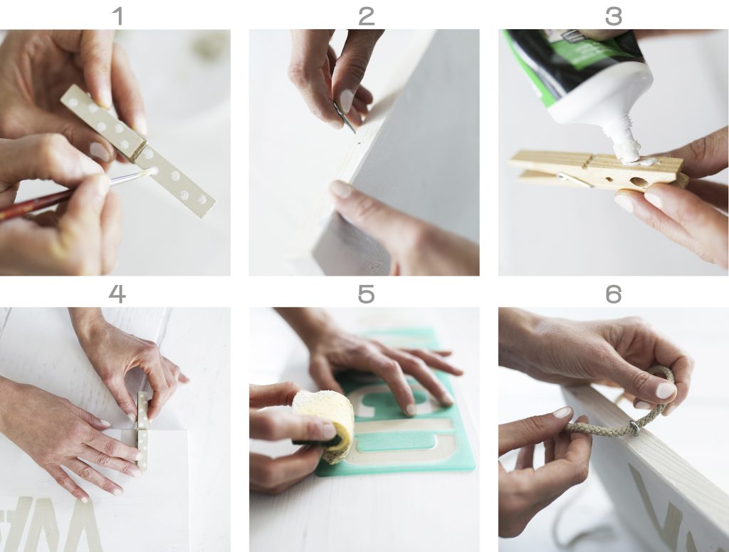 - Colora la tavola di legno del colore che preferisci e inserisci la vite a occhiello nella parte superiore della tavola di legno