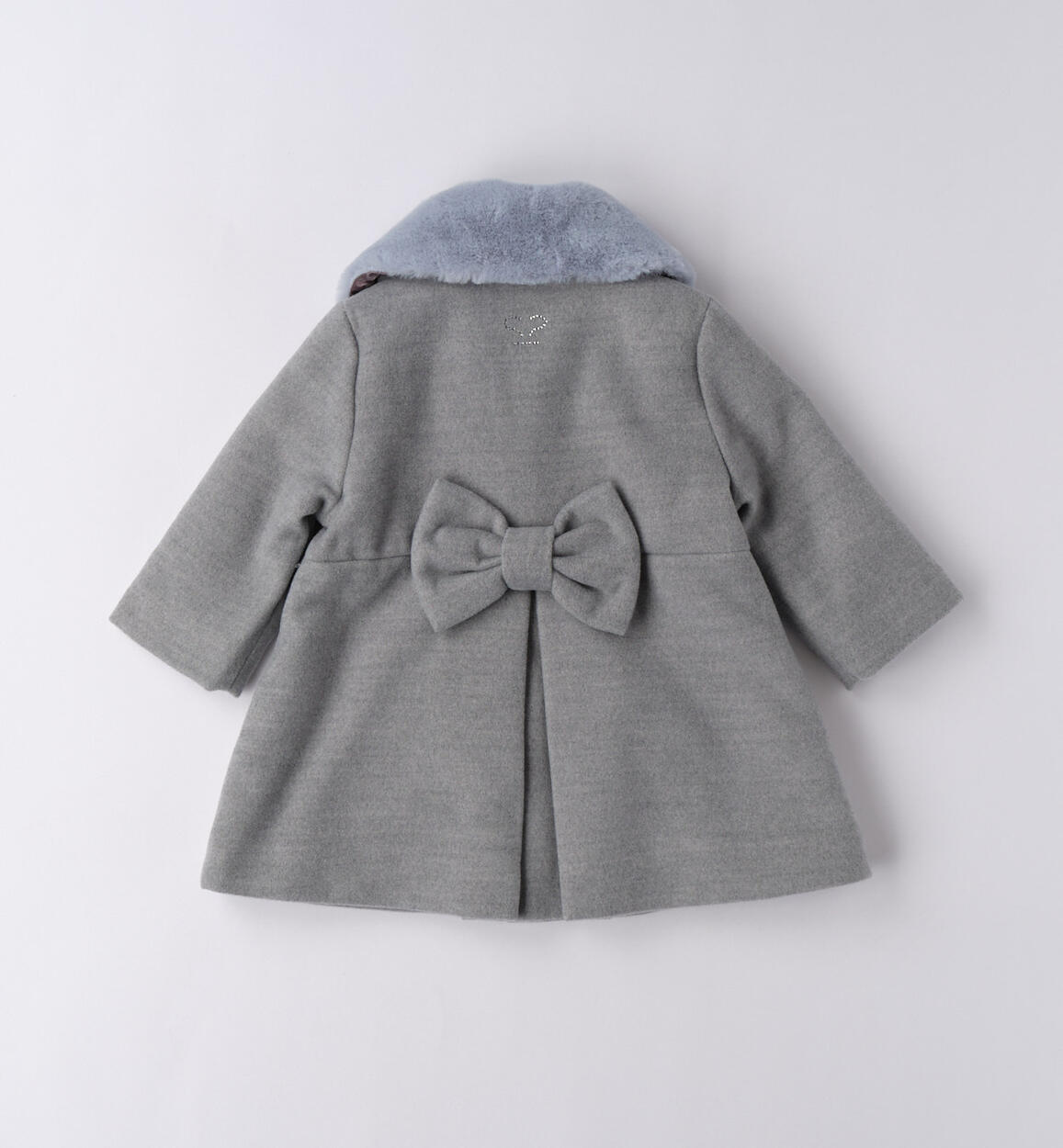 Cappotto per bambina Sarabanda 9 mesi - 8 anni realizzato in morbido tessuto con fodera in satin e imbottitura in ovatta. Fiocco dietro. Apertura davanti con bottoni nascosti. Tasche a cuore illuminate di strass. Colletto in caldo e morbido tessuto staccabile. Il prodotto non contiene materiali di derivazione animale. Animal free è un marchio di LAV www.animalfree.info