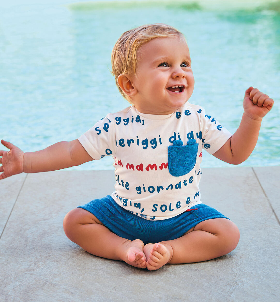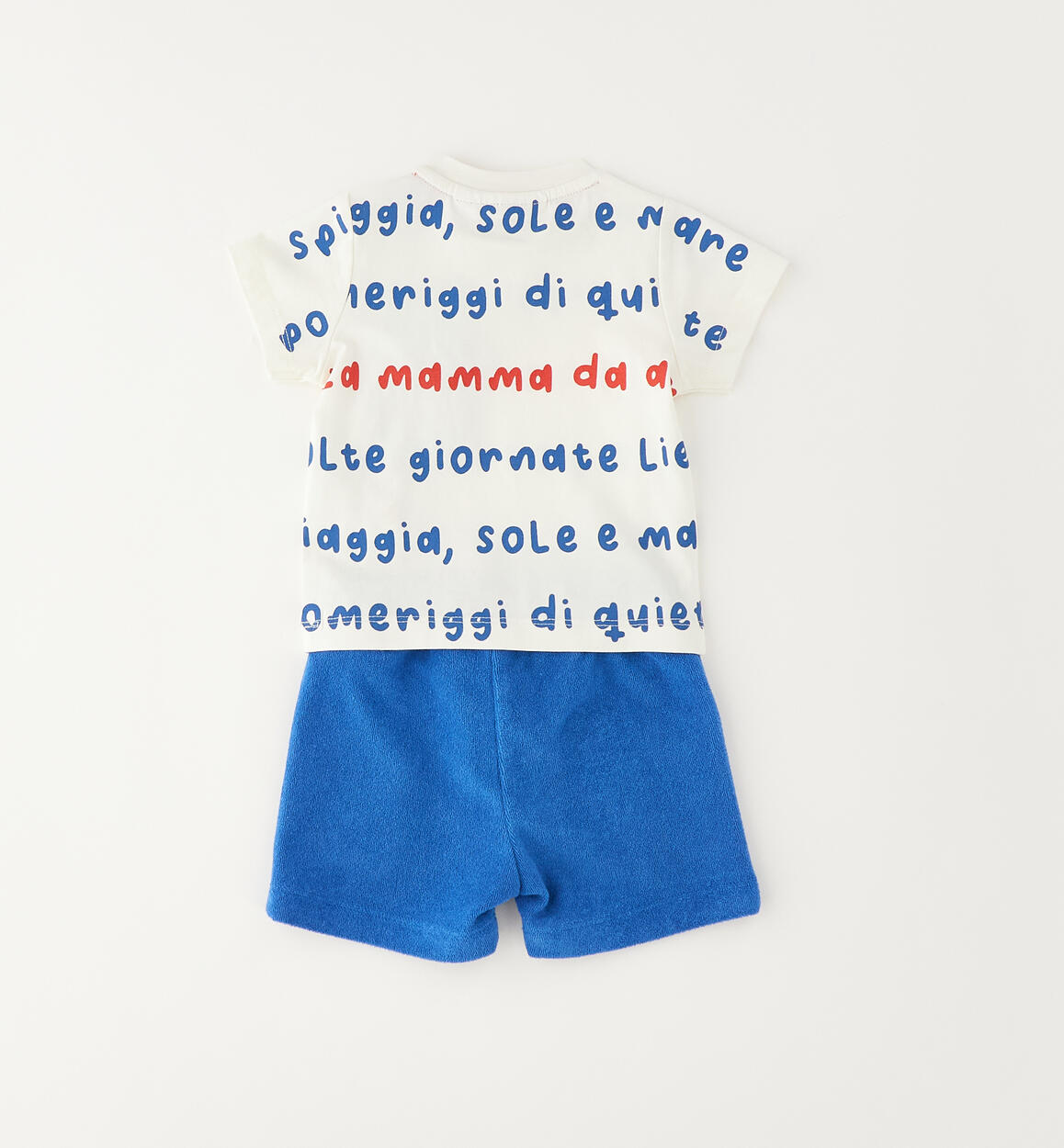 Completino estivo per neonato Minibanda realizzato in cotone. T-shirt realizzata in jersey stretch con stampa all over, apertura sulla spalla con bottoni a pressione e taschino in abbinamento al pantaloncino. Shorts in spugna, con tasche ed elastico in vita e coulisse. Scegliendo i nostri prodotti in cotone, sostieni l'impegno di Minibanda nella missione Better Cotton. La fornitura di questo prodotto avviene tramite un sistema di bilancio di massa e potrebbe non contenere Better Cotton. Leggi di più su bettercotton.org/massbalance