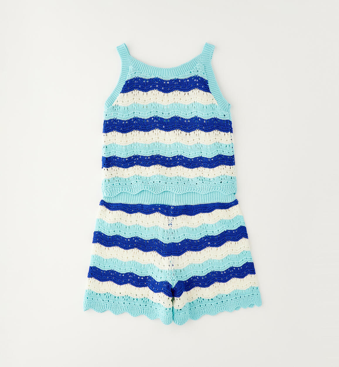 Completo per ragazza Sarabanda realizzato in tricot 100% cotone con fodera interna. Modello composto da top e short