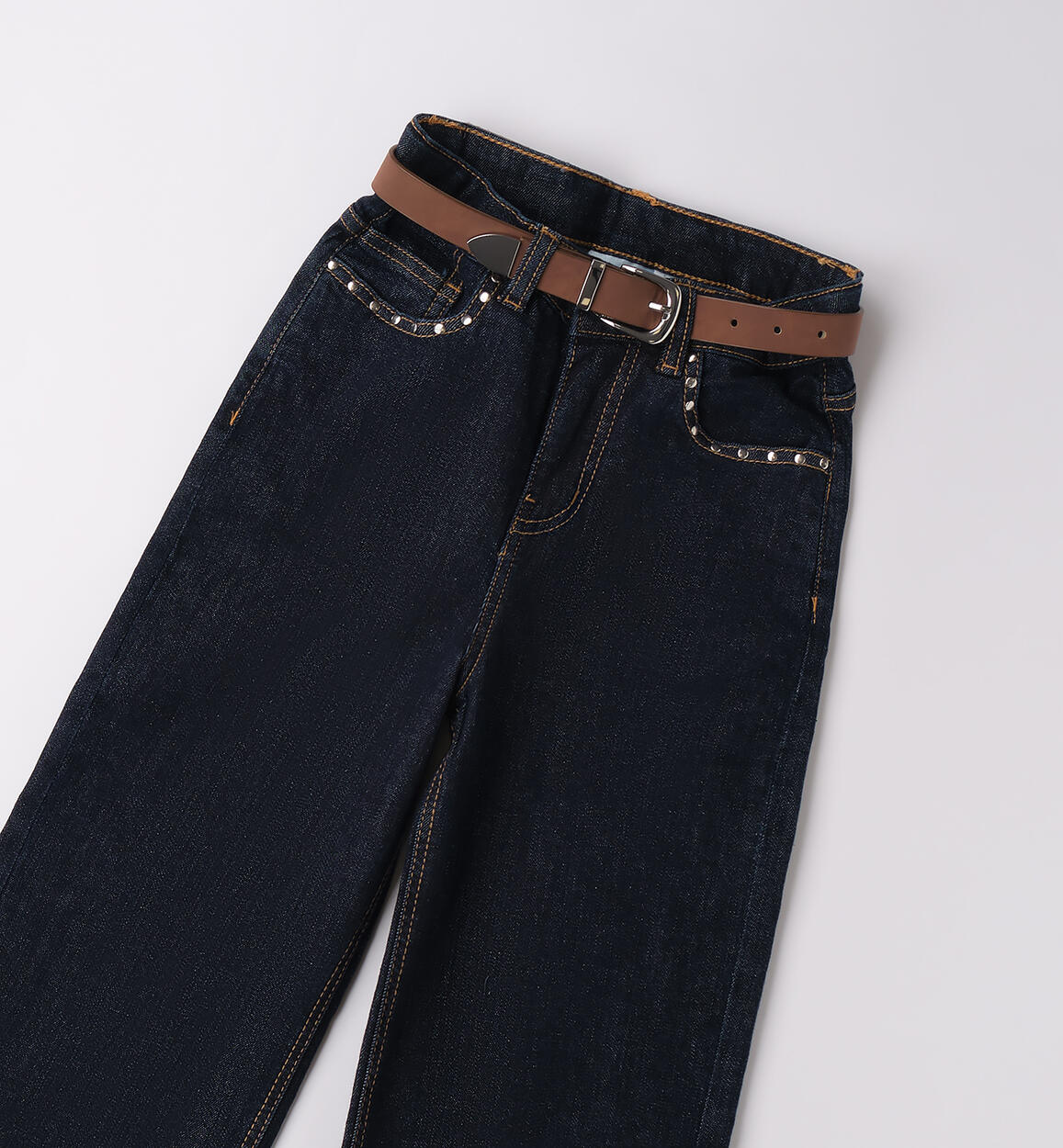 Jeans per ragazza Sarabanda 8-16 anni in denim stretch di cotone. Il modello ha apertura con bottone e zip ed è arricchito da borchie. Risvolto sul fondo. Impunture a contrasto. Vestibilità ampia. Vita regolabile con elastico asolato interno. Cintura in abbinamentoComposizione
