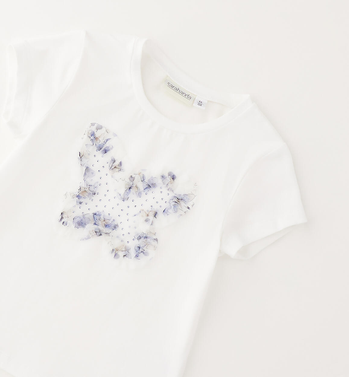 T-shirt per bambina Sarabanda realizzato in jersey stretch di cotone con applicazioni in tulle e strass