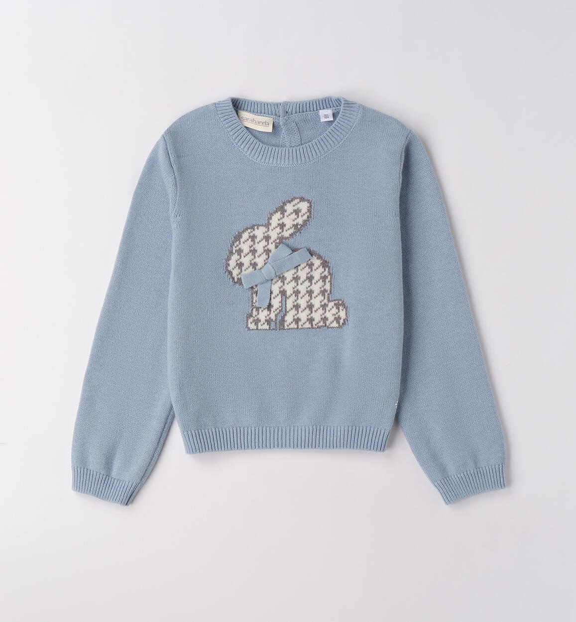 Maglione bambina Sarabanda 9 mesi - 8 anni realizzato in tricot con coniglietto pied de poule e fiocco in applicazioneComposizione