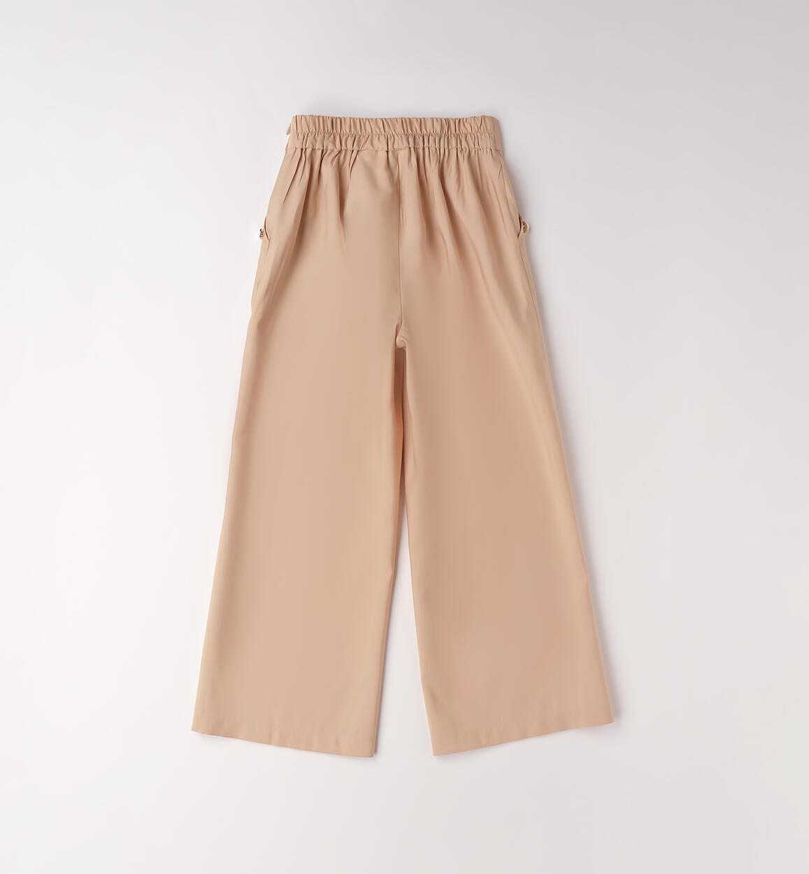 Pantalone lungo per ragazza Sarabanda realizzato in taffetà. Apertura laterale con zip invisibile. Modello ampio con bottoni laterali in arricchimento