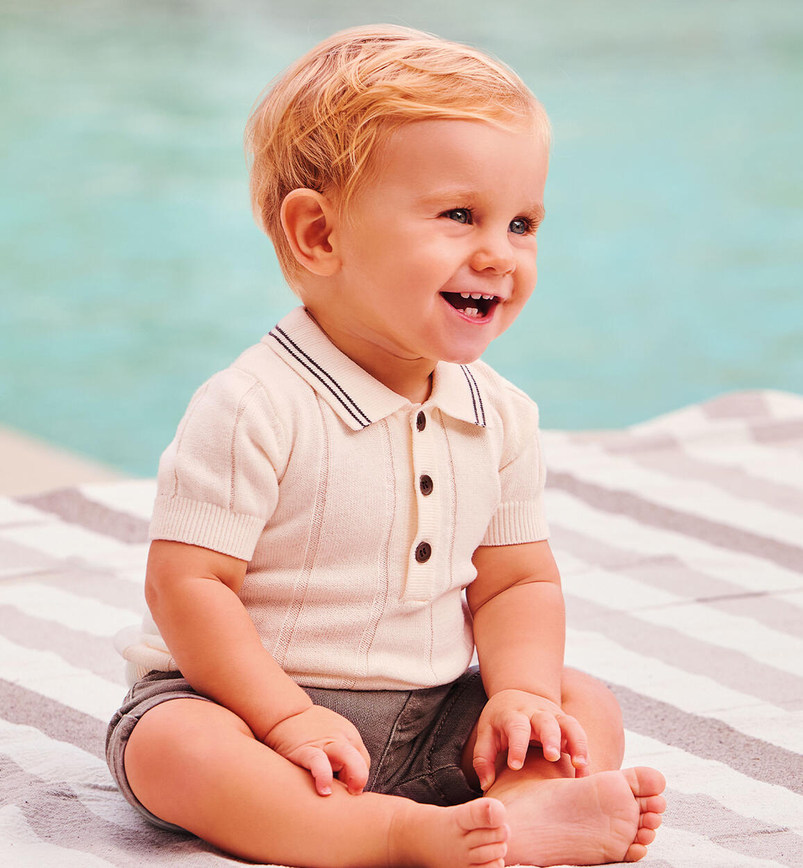 Maglia per neonato Minibanda realizzata in tricot 100% cotone. Modello polo con apertura davanti tramite bottoni. Scegliendo i nostri prodotti in cotone, sostieni l'impegno di Minibanda nella missione Better Cotton. La fornitura di questo prodotto avviene tramite un sistema di bilancio di massa e potrebbe non contenere Better Cotton. Leggi di più su bettercotton.org/massbalance