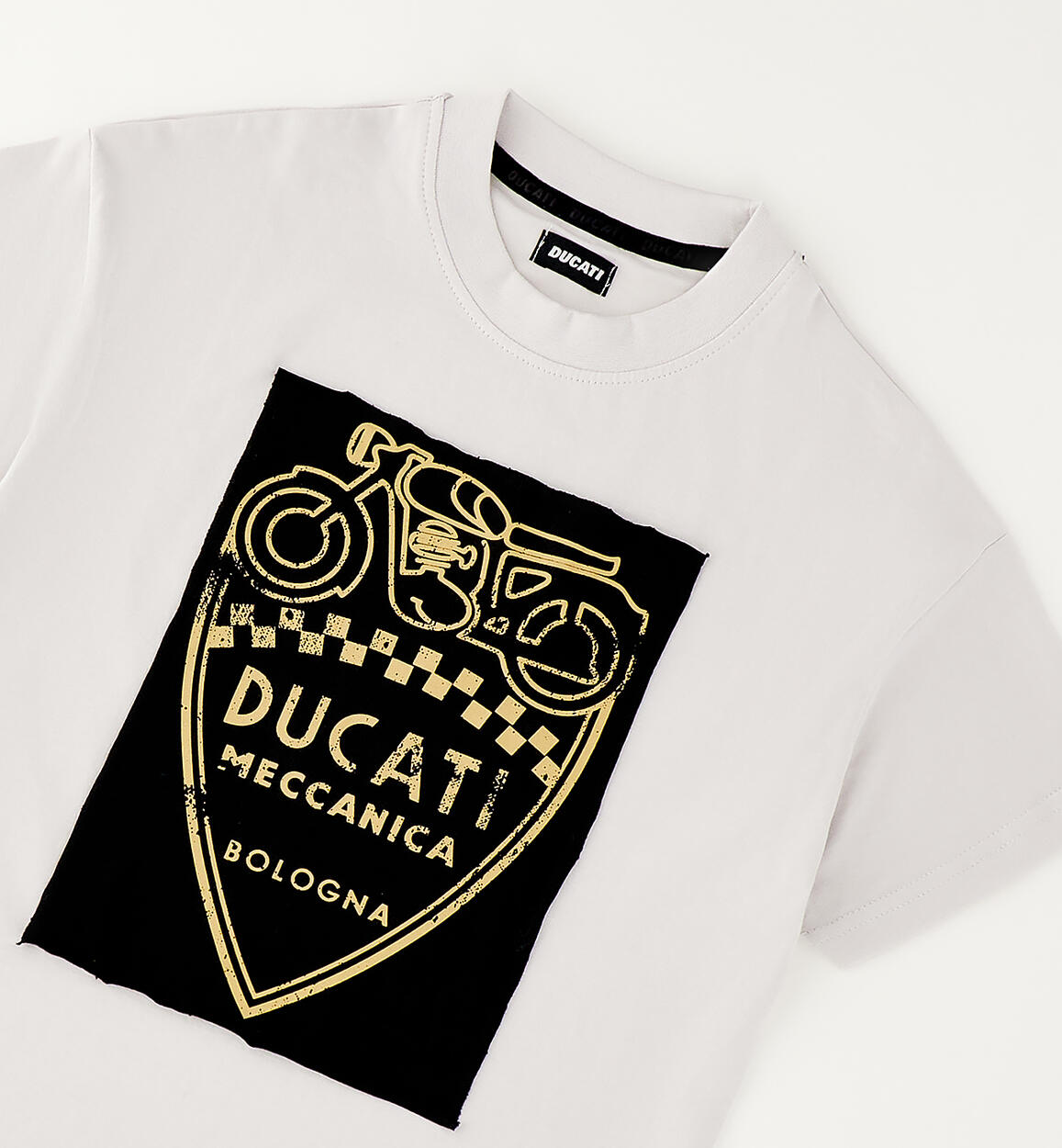 T-shirt per ragazzo Ducati realizzata in jersey 100% cotone con stampa in applicazione tessuto. Vestibilità over. Scegliendo i nostri prodotti in cotone, sostieni il nostro investimento nella missione Better Cotton. La fornitura di questo prodotto avviene tramite un sistema di bilancio di massa e potrebbe non contenere Better Cotton. Leggi di più su bettercotton.org/massbalance