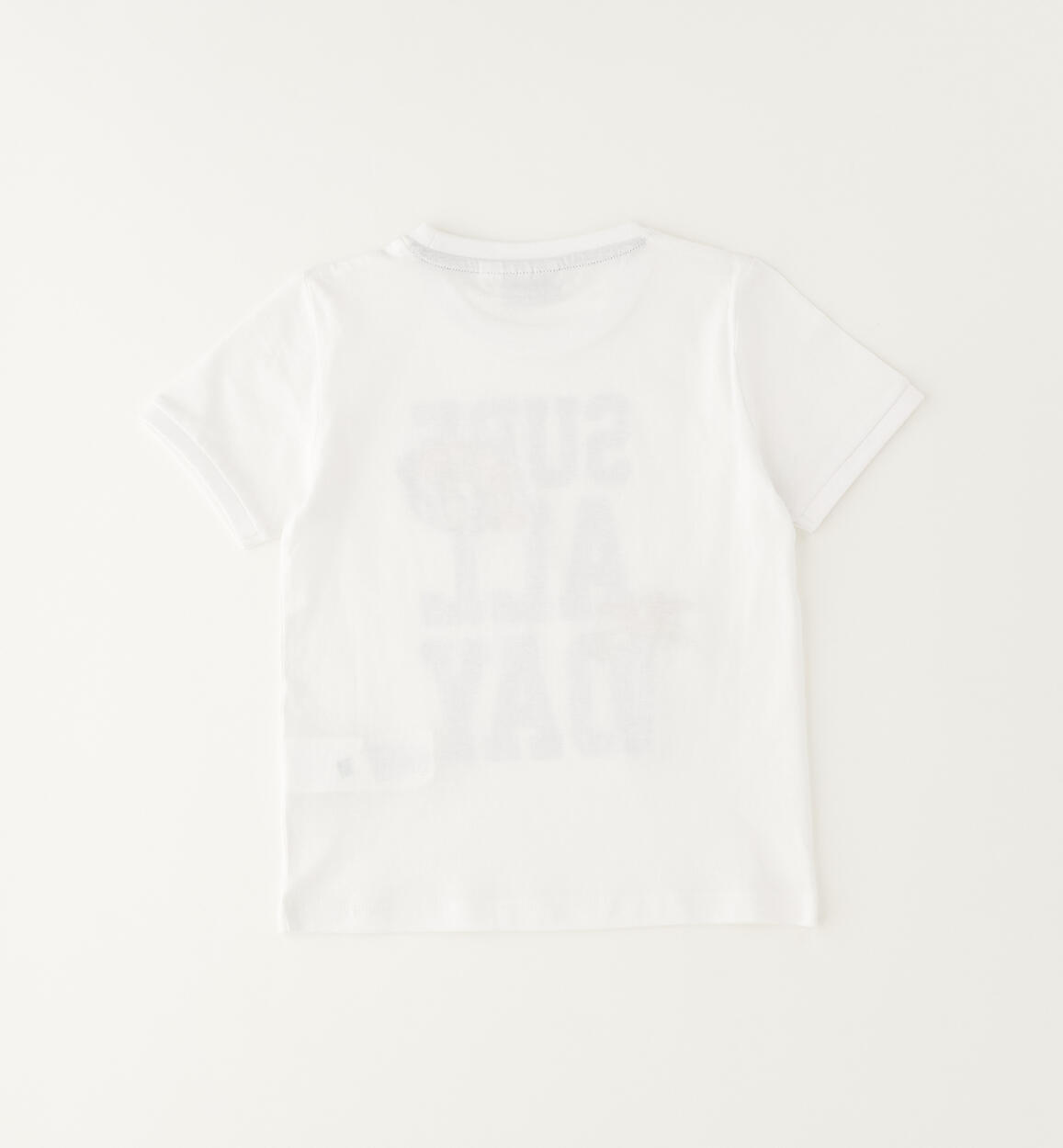 T-shirt per bambino Sarabanda realizzata in jersey 100% cotone con stampa orso davanti e dettagli a rilievo. Tema surf